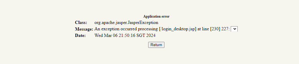 When this application error occurs, there is a problem with the database connection due to lack of User's privileges in database.