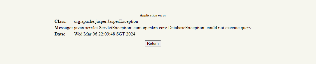 Error in Figure 5 occurs because there is no existing openKM UUID in the database. In order to resolve the problem we need to create a UUID when accessing openKM page.