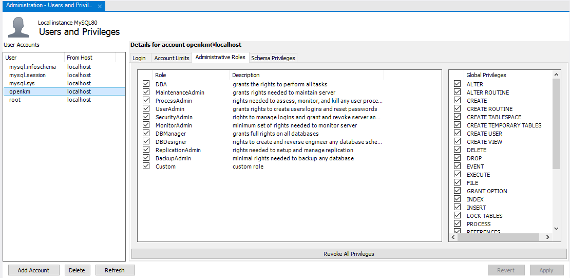 OpenKM is able to integreate with MySQL, PostgreSQL, Oracle or SQL Server. In this article, we will be using MySQL as the OpenKM database.