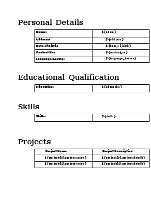 Create a word document template with general fields which will determine the layout. For example, if one want to create a resume, the word template will be as shown in Figure 1.