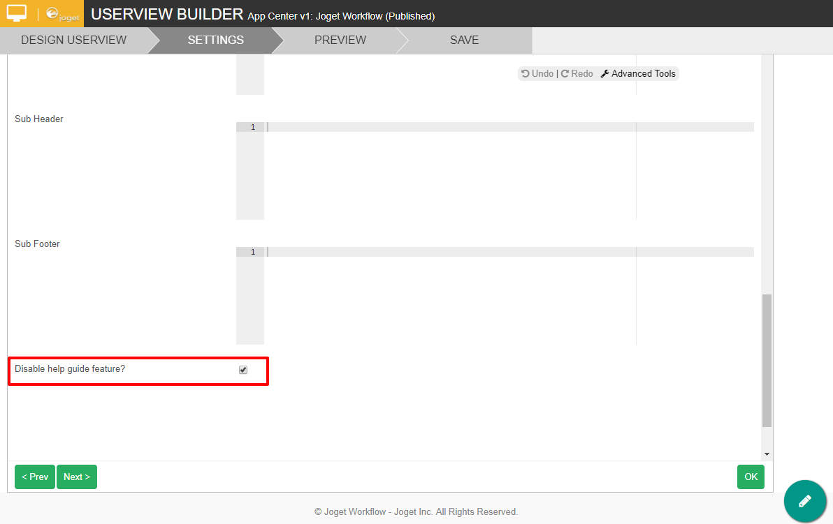 - Scroll down to the bottom of the page and check the box, "Disable help guide feature?"
