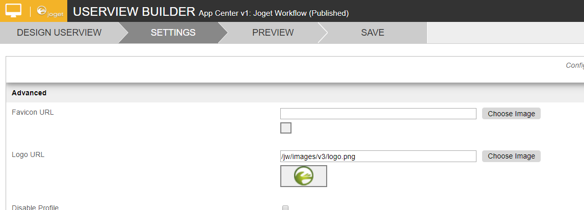 - 在App Center中显示的徽标可以在UserView Builder的设置>logo URL下进行更改。