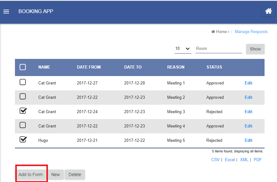 例如,在下图中,我们选择了2行,然后单击“添加到表单”按钮。