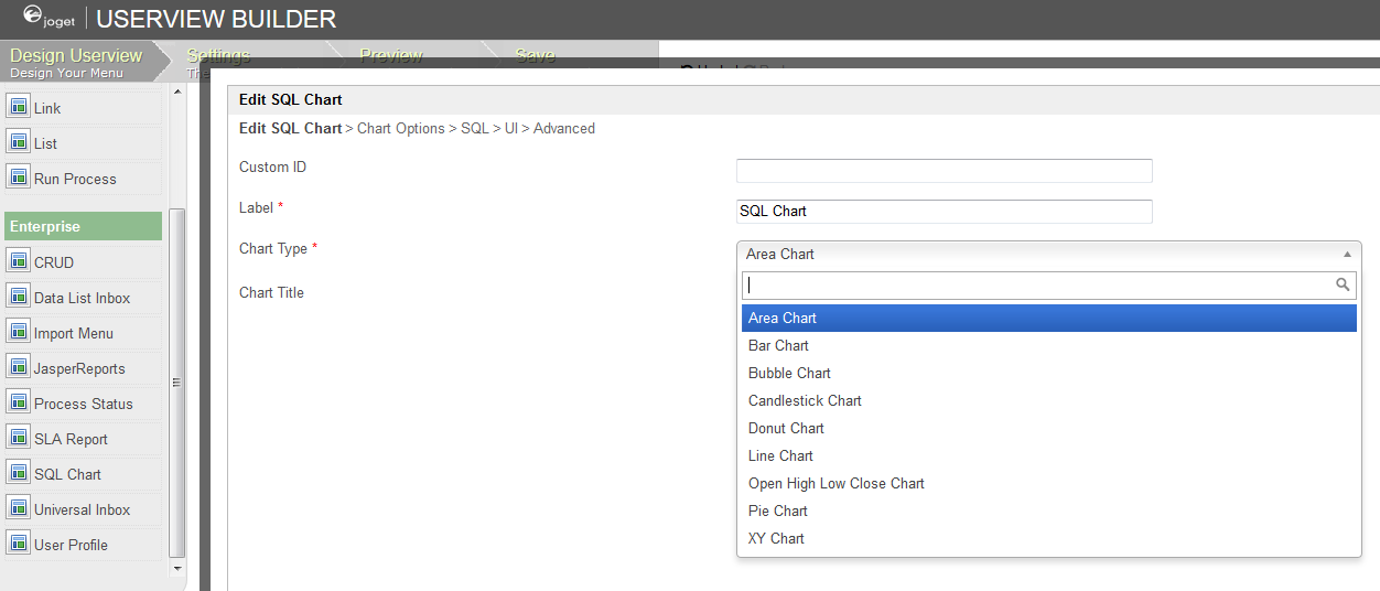 SQL图表 为您提供了另一种报表媒体。您可以灵活地定义自己的SQL查询,以确定您想要生成的图表,从多种图表类型。
