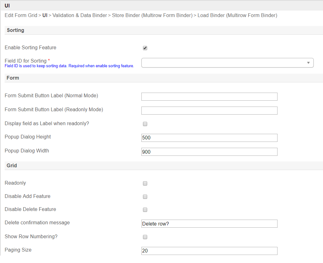 Store Binder | ตัวเลือกโดยค่าเริ่มต้น ข้อมูลตารางจะถูกบันทึก / โหลดในรูปแบบ JSON ในฐานข้อมูลที่กำหนดไว้ ในตัวอย่างนี้ Multirow Form Binder ถูกใช้เพื่อโหลดข้อมูลจากฟอร์มอื่น ดูรายการที่มีอยู่ สิ่งที่ผูกกับฟอร์ม (Form Binder). |