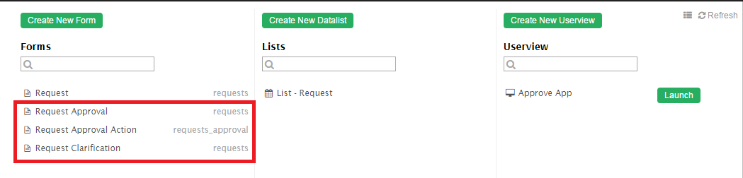 Generate Process - Approval Process ฟังก์ชั่นจะสร้างการไหลของกระบวนการอนุมัติทั่วไปพร้อมกับแบบฟอร์มที่สมบูรณ์และรายการเมนู userview ลงในแอพที่คุณมีอยู่