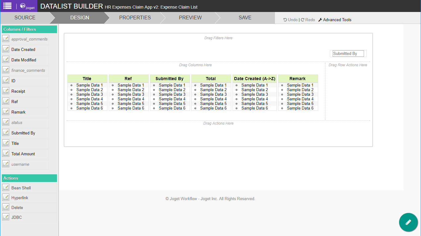 ตัวสร้างดาตาลิสต์ การสร้างรายการของค่าฟิลด์สะสมจากกระบวนการเวิร์กโฟลว์ทั้งหมดที่เกี่ยวข้องกับแบบฟอร์มที่เลือก กล่าวคือเมื่อใดก็ตามที่ผู้ใช้กรอกแบบฟอร์มแถวจะถูกเพิ่ม/อัปเดตลงในตารางฐานข้อมูลที่เกี่ยวข้องกับฟอร์มนั้นและข้อมูลจะถูกนำมาแสดงในดาตาลิสต์