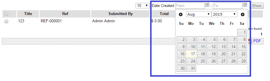 ตัวกรองช่วงวันที่ อนุญาตให้ค้นหาผ่านดาตาลิสต์ ผ่านตัวเลือกวันที่