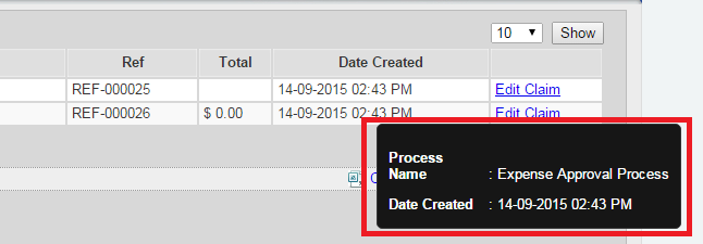 รูปที่ 1: ภาพหน้าจอแสดง Datalist Inbox จาก HR Expenses Claim app
