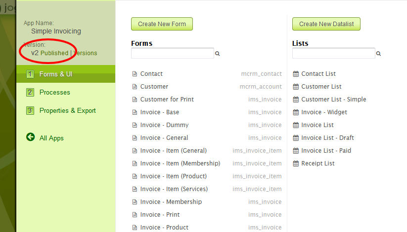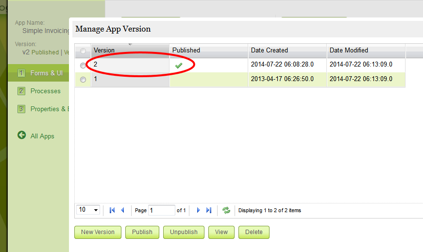 คุณจะเห็นว่ามีการสร้างแอปออกใบแจ้งหนี้ฉบับที่ 2 แล้ว จากภาพคุณจะเห็นได้ว่าแอปพลิเคชันยังไม่ได้เผยแพร่ตามที่ระบุไว้ v2 Not Published ตรงจุดนี้คุณยังคงใช้เวอร์ชันเดิมจนกว่าจะเผยแพร่เวอร์ชันใหม่ คลิก Not Published เพื่อเผยแพร่เวอร์ชันใหม่