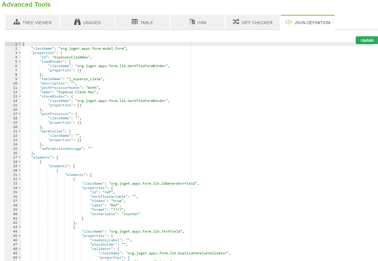 รูปที่ 9: Advanced Tools - JSON Definition