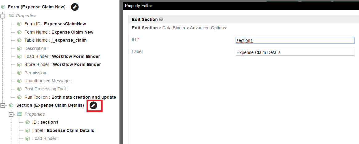 คลิกที่ไอคอนแก้ไข (ดินสอ) ทางด้านขวาของโหนดที่ช่วยให้หนึ่งในการกำหนดค่า/แก้ไขคุณสมบัติได้ทันที เมื่อบันทึกคุณสมบัติ, ผู้ชมต้นไม้จะรีเฟรชตัวเอง.