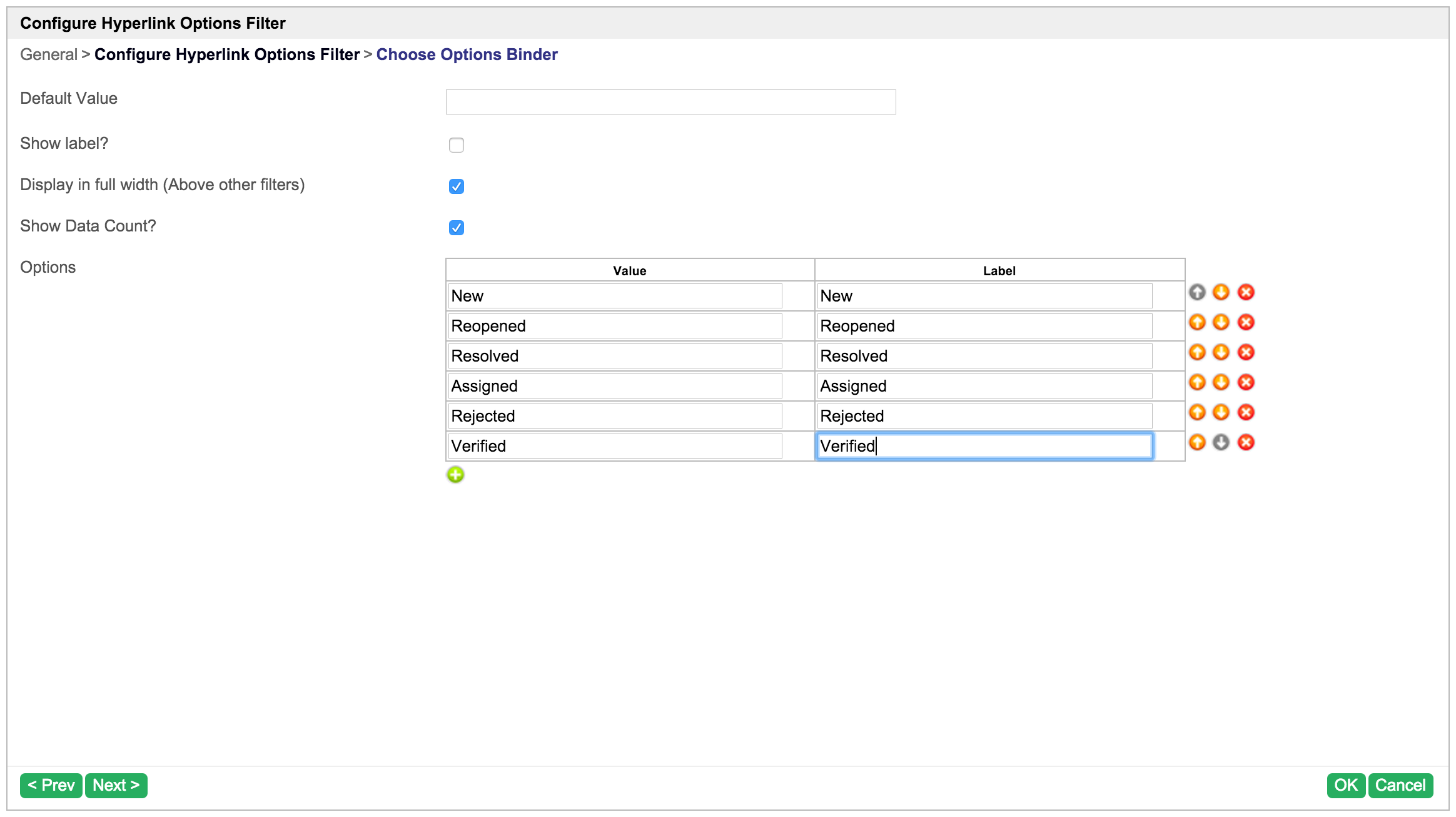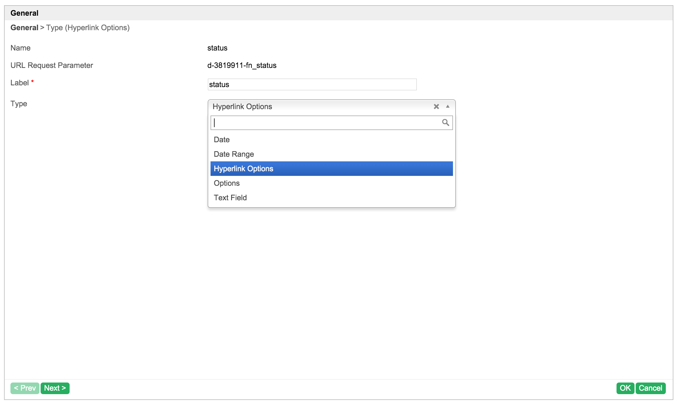 จากนั้นตรวจสอบว่าตัวเลือกไฮเปอร์ลิงค์นั้นแสดงเป็นตัวเลือกประเภทตัวกรองใน ตัวสร้างดาตาลิสต์ (Datalist Builder).