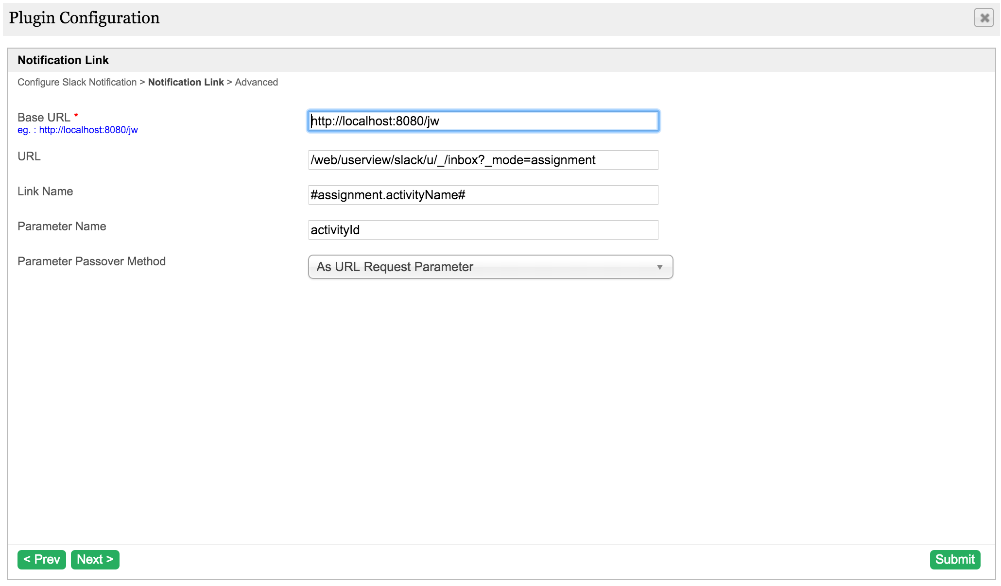 Configure the Slack Notification plugin. We can see the properties options are quite similar to User Notification plugin.