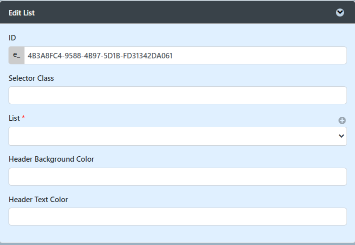 Header Text Color | The color of the list header text. Choose the color through the color picker. |