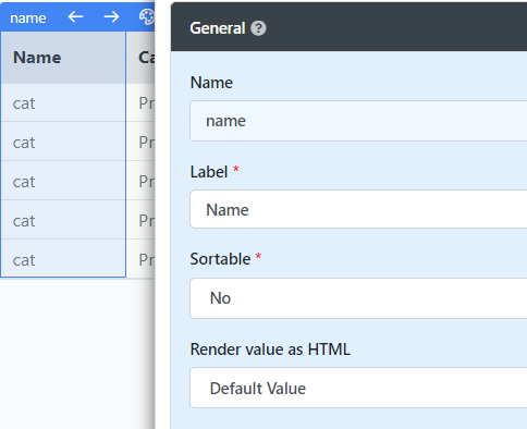 | Decimal Format | Format decimal numbers of the current numeric value. | Header Alignment | | Alignment | | Width | Column width. |