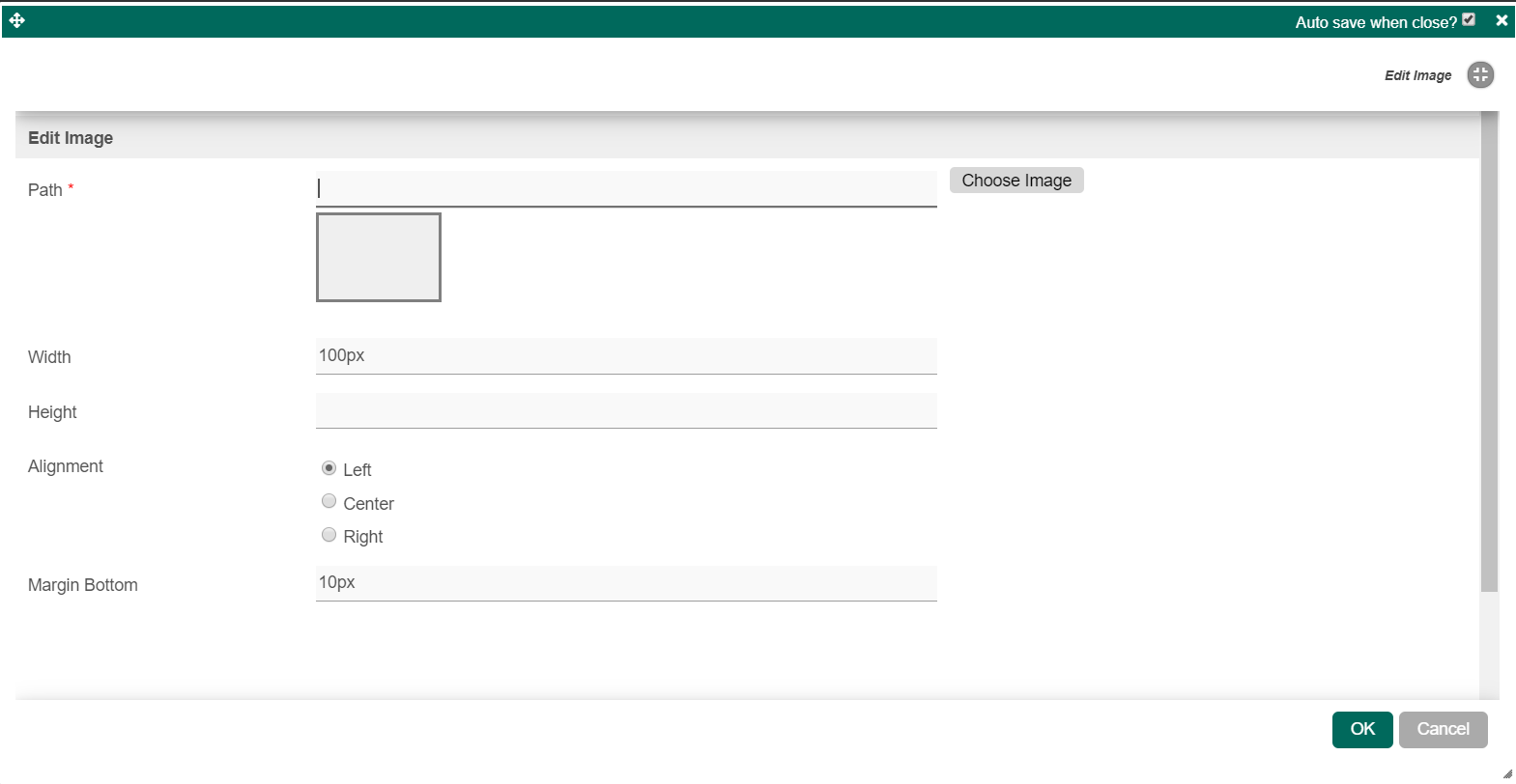 Width | Width of Image Example 100px or 100% |