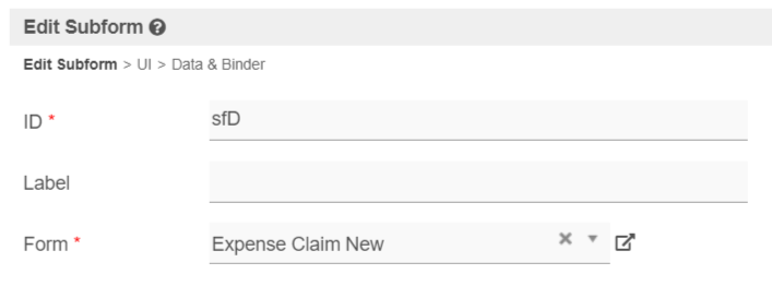 ID | Element ID. Since the subform is not an input field, one may leave it as it is. Please see Form Element for more information about defining the ID and list of reserved IDs. |
