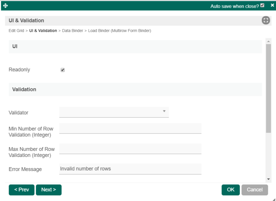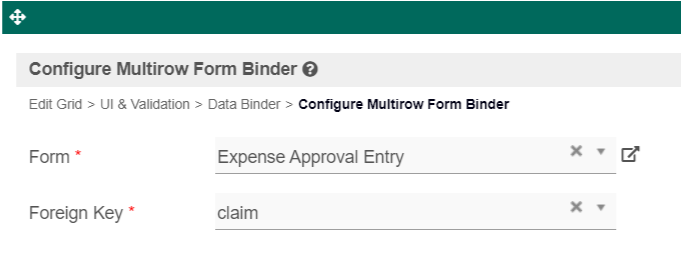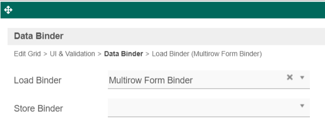 Load Binder | Option by default. Grid data will be saved/loaded in JSON format in its defined database cell. In this example, Multirow Form Binder is used to load data from another form. |
