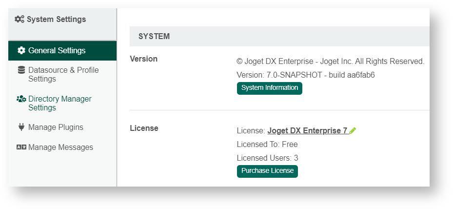 Note down the product edition and version that you have installed - (i.e. Joget DX Enterprise) and version (i.e. Version 7)