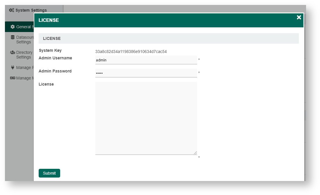 - Please refer to the following screenshot to get the system key. The system key is a unique key that is different for every Joget installation.