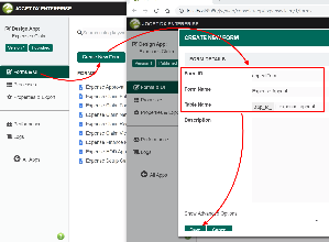 Form | Target Form to be loaded. Usage of Hash Variable The use of Hash Variables inside the target form is permissible but may be limited due to the nature of how the form is loaded. Example 1: One can use #requestParam.primaryKey# to access the record ID. Example 2: One can use #form.tableName.fieldId[{requestParam.primaryKey}]# to access field value of the given record ID. |