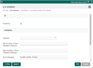 Load Binder | Option by default. Grid data will be saved/loaded in JSON format in its defined database cell. In this example, Multirow Form Binder is used to load data from another form. | |