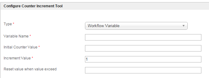Counter Increment Tool is used to increase a workflow variable or an environment variable within a workflow. This can be handy for activities such as loops.