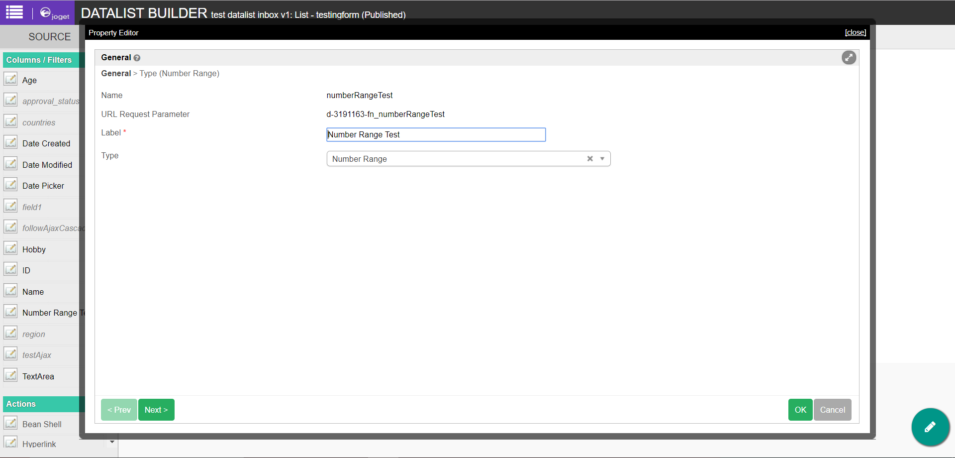 Figure 2: Screenshot of Number Range Filter in Datalist Builder