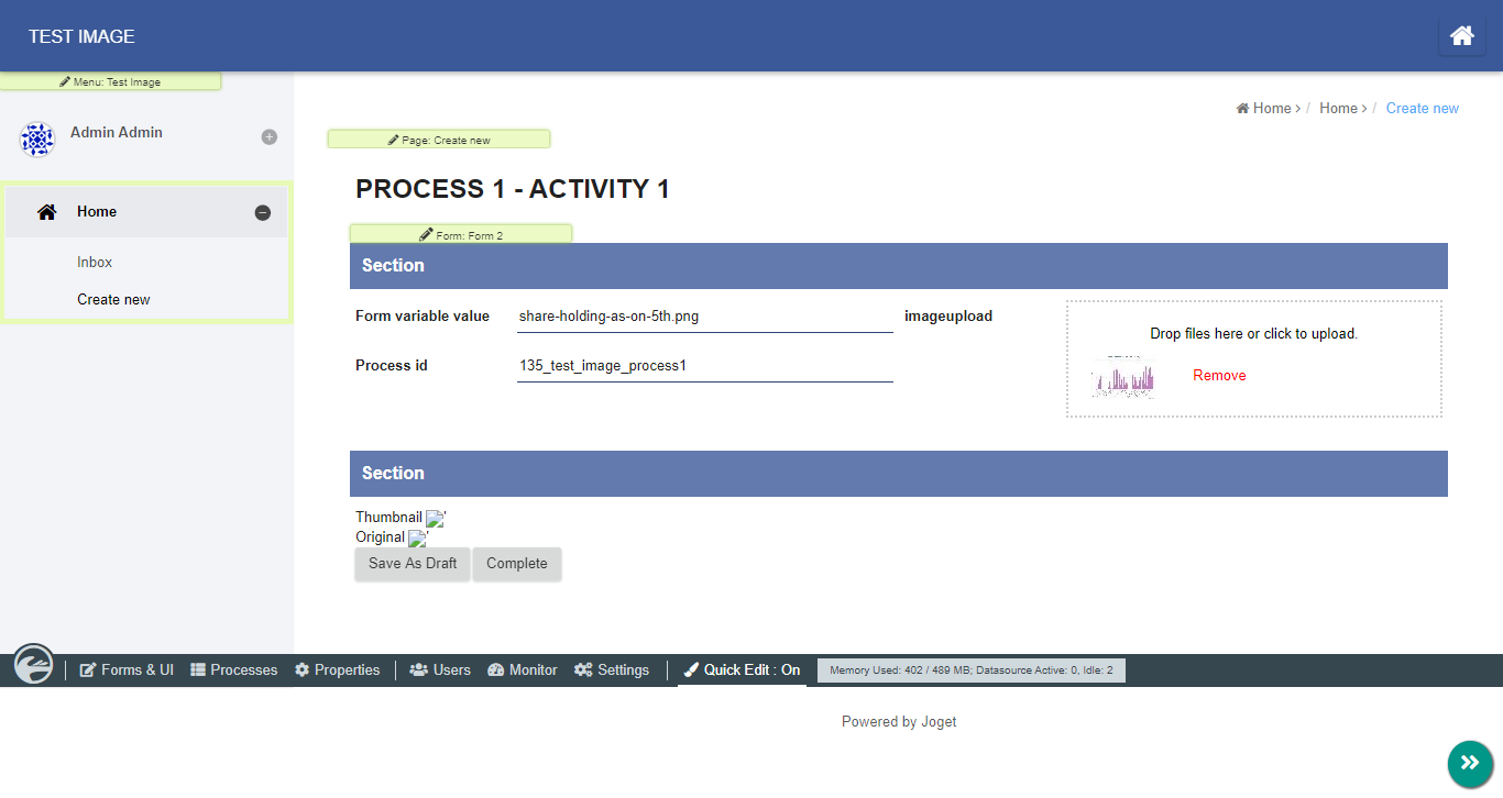 Hi. In the flow variable it will only save the name of the file. However for assembly of the reference in the IMG tag, the URL of the processed file and the form ID must be included. This is an SQL statement that assembles the tag, but it's the same idea: