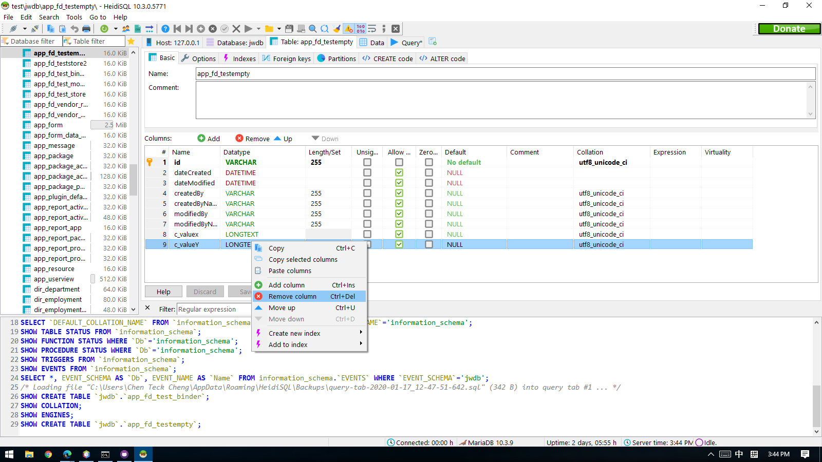 But what I know is that you can use HeidiSQL to check which column data is always updated, which is unused, especially column with null value.