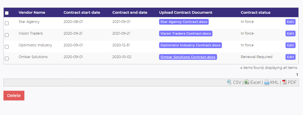 Hi all, I am designing vendor management system. It has a data list which stores vendor's contract information i.e start date and end date. I want to notify user prior to 10 days, that the contract with this vendor will be going to end. Notification will be by any means , using email or else notifying in data list. I am attaching SS here.
