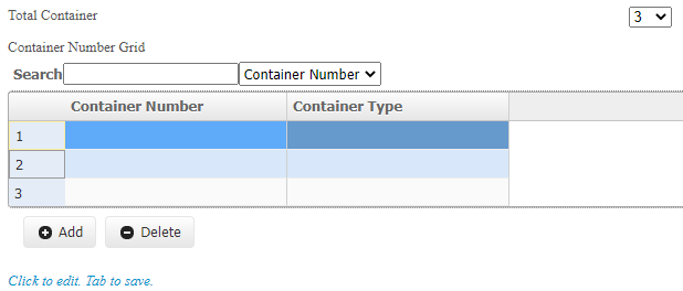 I am trying to implement a feature where the user will select the Total Container, lets say '3'. Automatically this act as a validator and restrict the number of rows that can be added in a grid. Example similar to Figure 1.