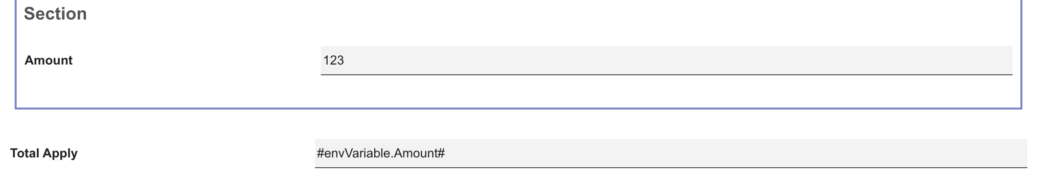 How to get same value from amount? im try put #envVariable.Amount#, but its not work.