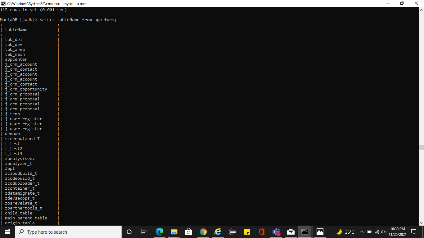 above querry giving all the table name from app but I want only particular table names from particular app.