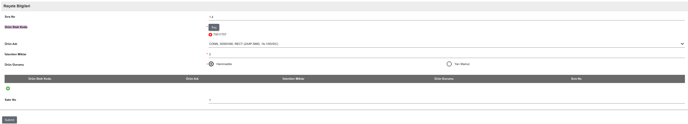 When data is entered into the Popup Select Box in the "Product Stock Code" field in the pictures, I want it to query the formgrid field in the sub-field and write the fields equal to the "Product Stock Code" in the database in the formgrid.