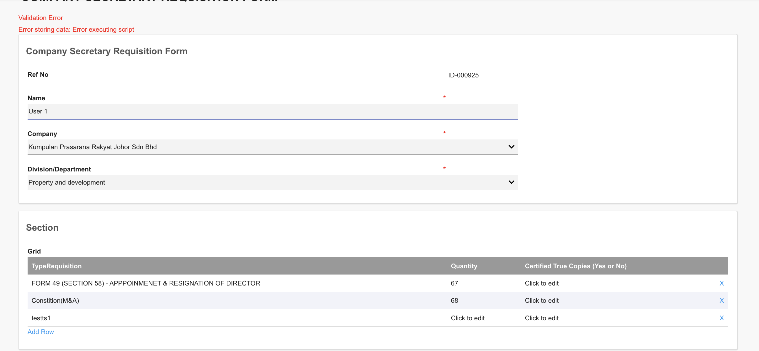2) Click Company Secretary Form. grid will display data from table Type Requisition.(Its my problem now, error when load & Store form binder).
