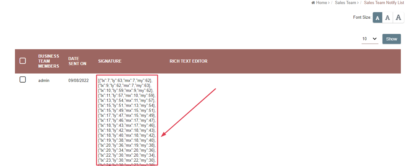 While uploading the Signature, I have Encrypted. But I am not able to view in List/CRUD. Is there any Solution/s to this...