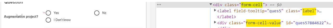 - Custom CSS on 2nd row will change color of label (question in my case).