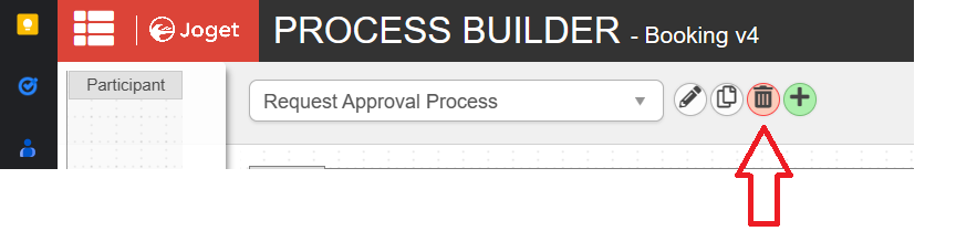 Processes > Design Process > there's a delete button beside the process selection dropdown.