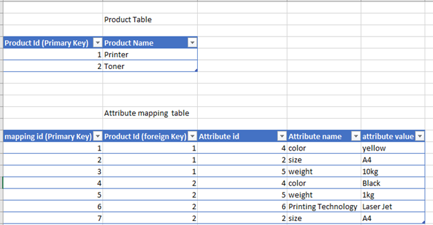 I have two different tables in joget linked to each other, one table is for products, and the other table is for product attributes. Product attribute is linked to product table with column product id (foreign key).