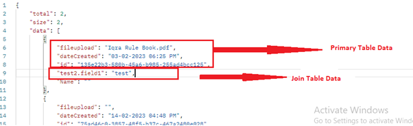 We have tried joining two different tables and generated the API for the same. But it does not meet our requirements. Following is the JSON format for the same.