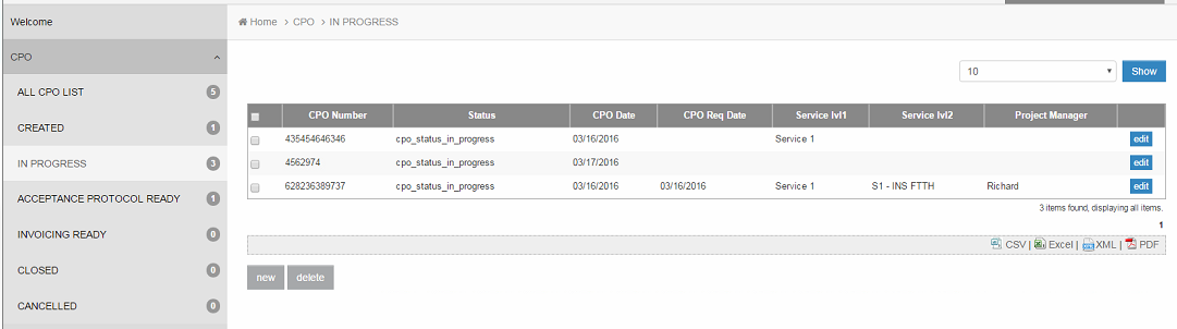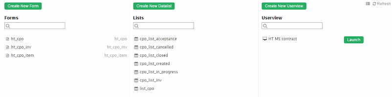 Here I have created different lists for different statuses and with CRUD I have added it to Userview - thanks to this user will be able to track in which status we have speciefic CPO's.