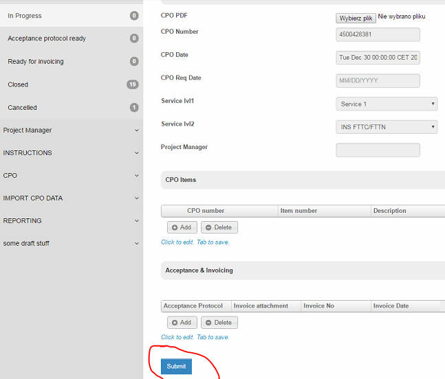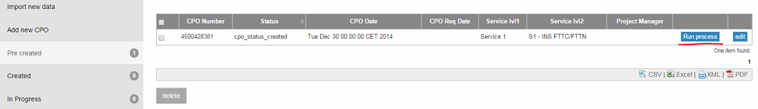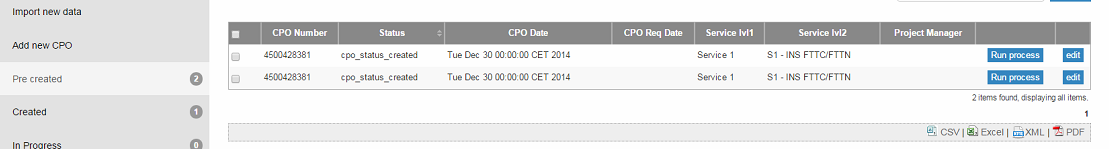 - Through Import Menu (here I can do it without running any process) or through Import Tool (here I have added new form to store data in xls "File upload form" and defined short process to upload data to table CPO "Store data form") I'm uploading data for eg. 20 CPO's.
