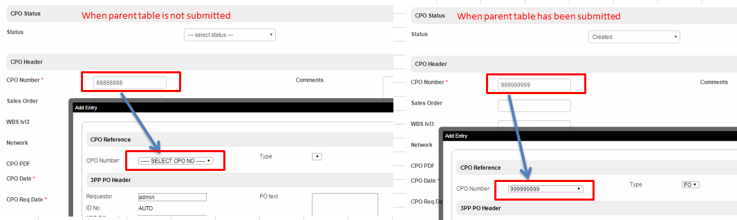 How can I transfer value from parent table to a child table, but in case parent table hasn't been submitted yet.
