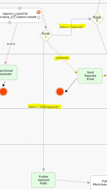 Could somebody support me with the Route1 here. I wonder why the route do not go to The further approval when user select furtherapproval button in the second picture?