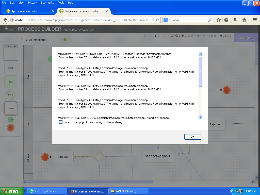 Deployment Error: Type=ERROR, Sub-Type=SCHEMA, Location=Package 'movementorderapp'