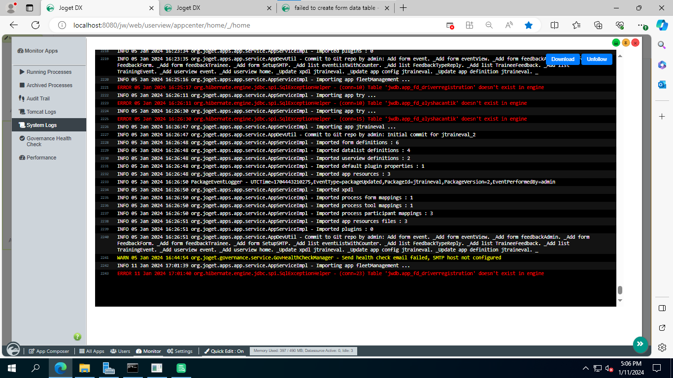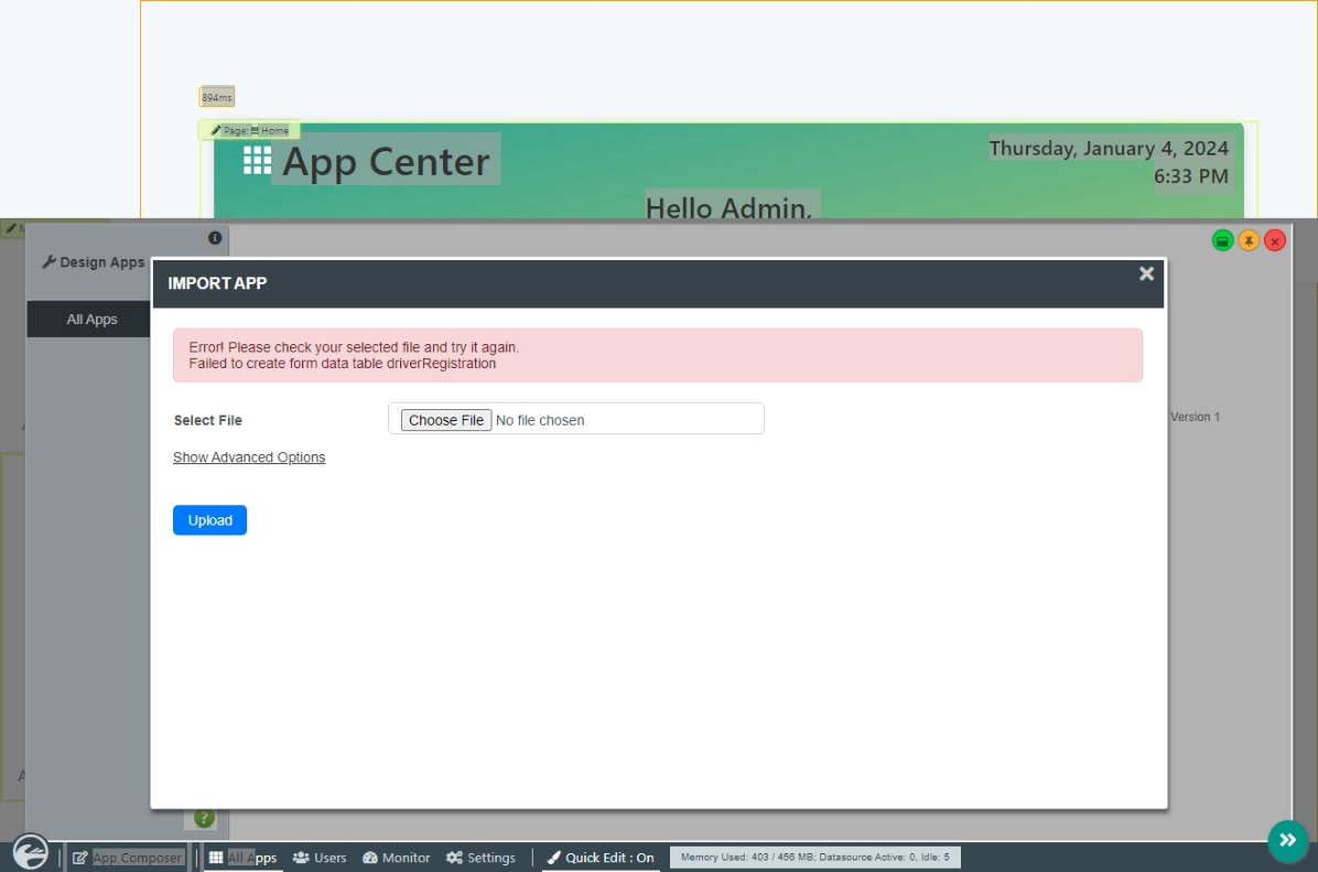 Hi. I installed Joget in my server, and I want to import my apps into the server but error appear said that it's Failed to create for data table. But, i successfully import it to another localhost. May I know why I can't import it to my server?