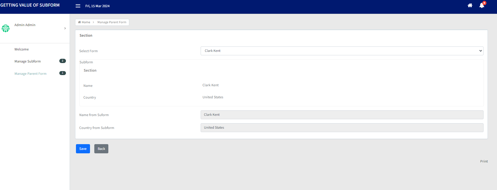selectmain = $(FormUtil.getField("field1")); //Get ID of subform
