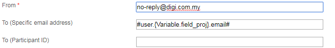 Hi Izzuddin Pauzi The #variable# hash should be in lower case, example: #user.{variable.field_proj}.email#.